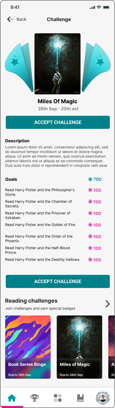 Solution Introduced a reading challenge feature where users could earn points and badges. A leaderboard was added to foster friendly competition, and the challenges were verified through milestones and quizzes, creating a more interactive and enjoyable experience.