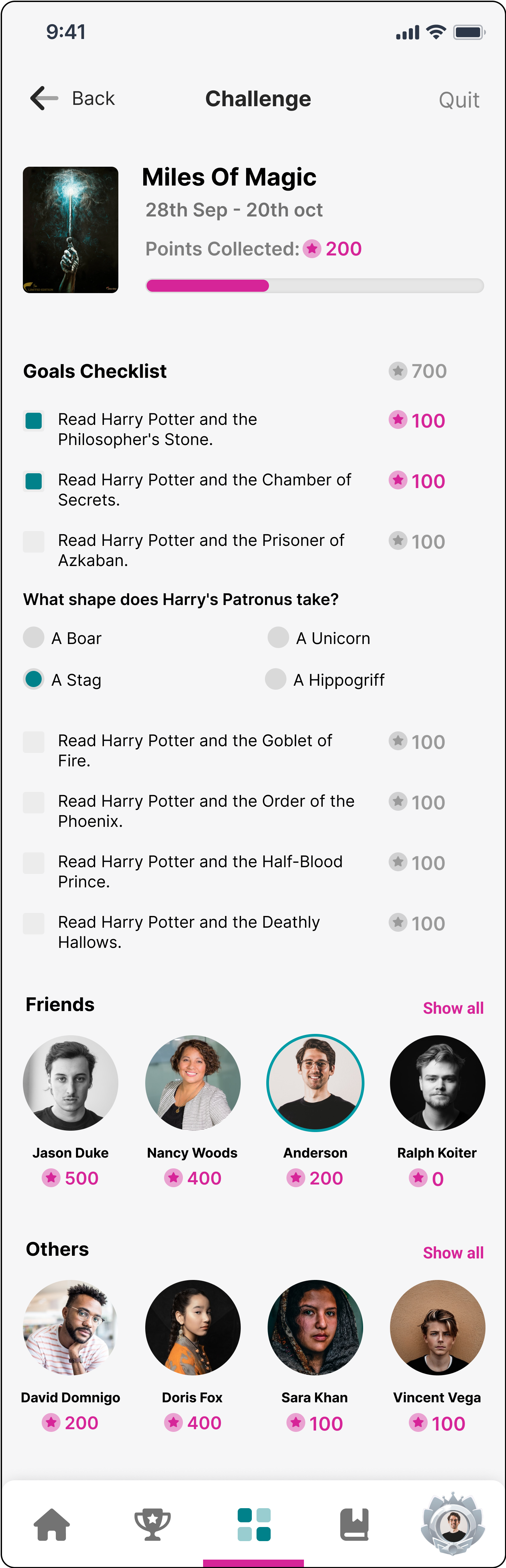 Pain Point Users lacked incentives to continue progressing through the levels of the reading challenges.