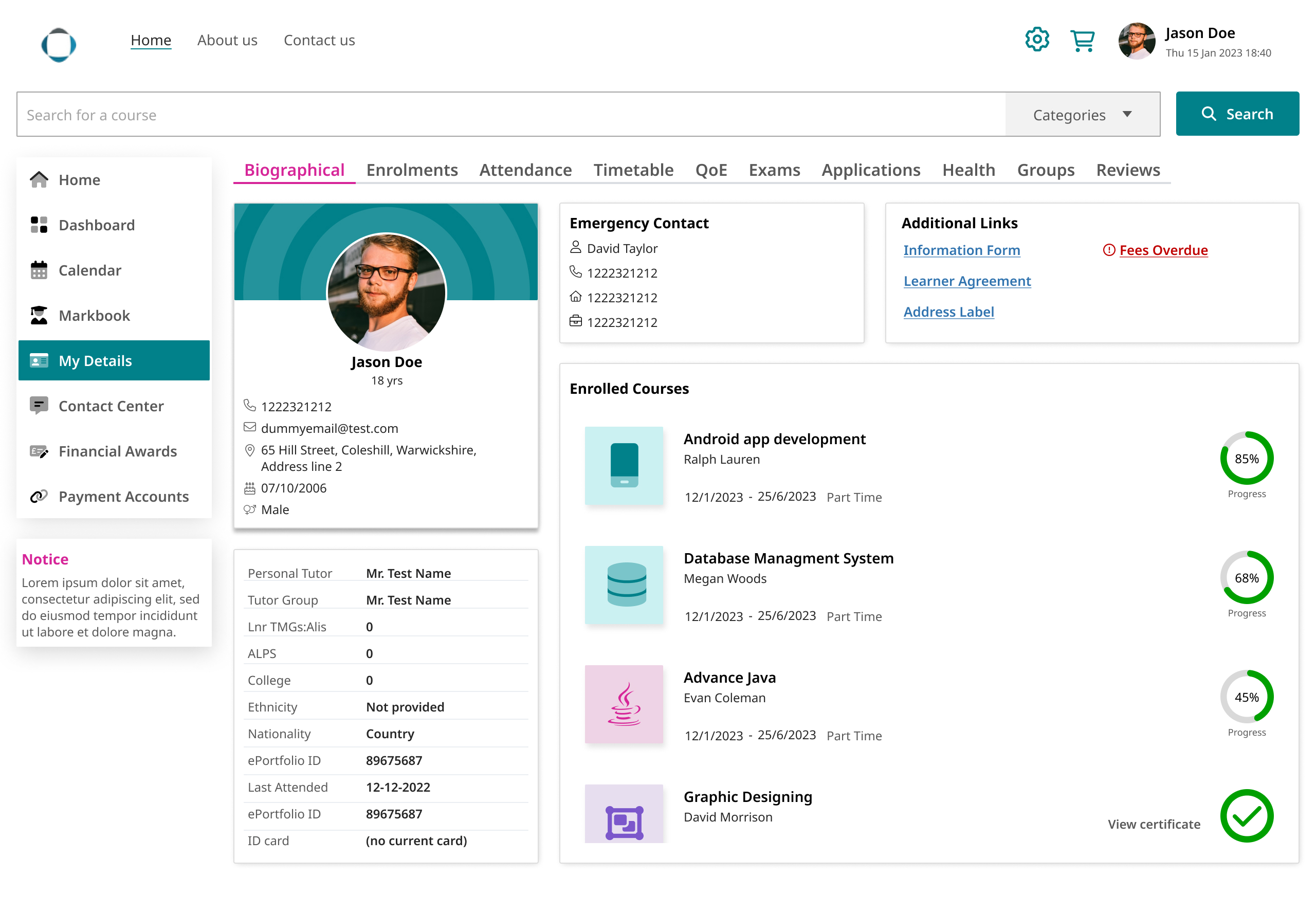 Sophia is a motivated, tech-savvy student who values staying organized and receiving timely, detailed feedback. With REMS, she would benefit from a centralized platform that helps her track grades, upcoming deadlines, and communication with her tutors, ultimately ensuring she stays on top of her academic workload and is well-prepared for her exams.